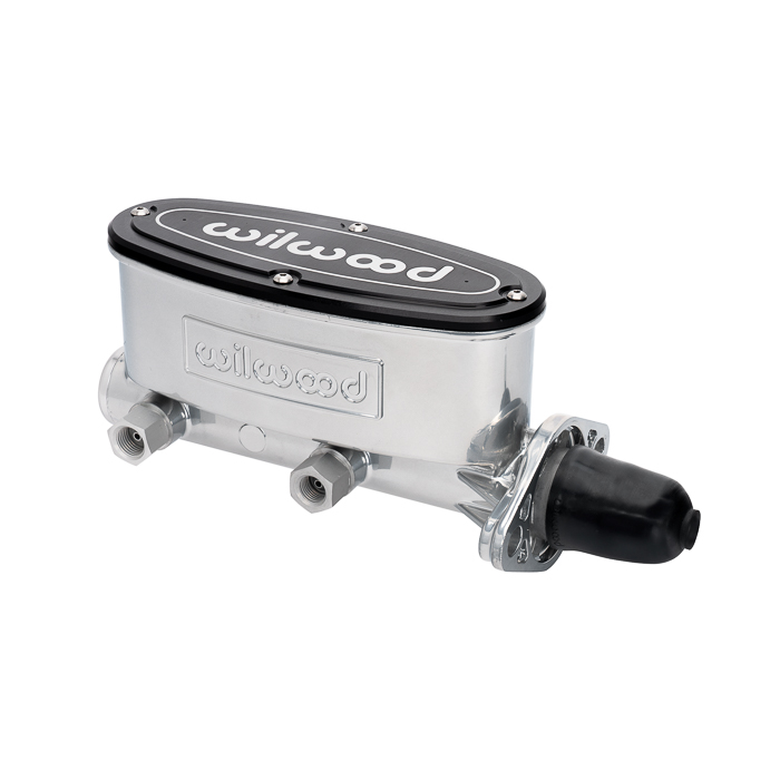 Wilwood’s 15/16” bore Tandem Aluminum Master Cylinders available in 3 finishes, plain, chrome powder coat, and black e-coat. This bore can be used in manual and power assisted applications and does not come with a pushrod. They’re designed for mount flanges from 3.22” to 3.40”, common measurements for most domestic cars and trucks from the mid 1960s to present, and offer fluid outlet ports on both sides of the bore. The stroke is set at 1.10” with a volume ratio of 2:1 between the primary and secondary chambers. Machined from high-pressure die castings, each master cylinder weighs only 3 lbs, a 75% weight savings over most cast iron OE type master cylinders. We also offer a our combination proportioning valve kit, which includes brackets and stainless lines specifically for use with these master cylinders, see PN 260-13190, or 220-13189 for retrofit kit.
