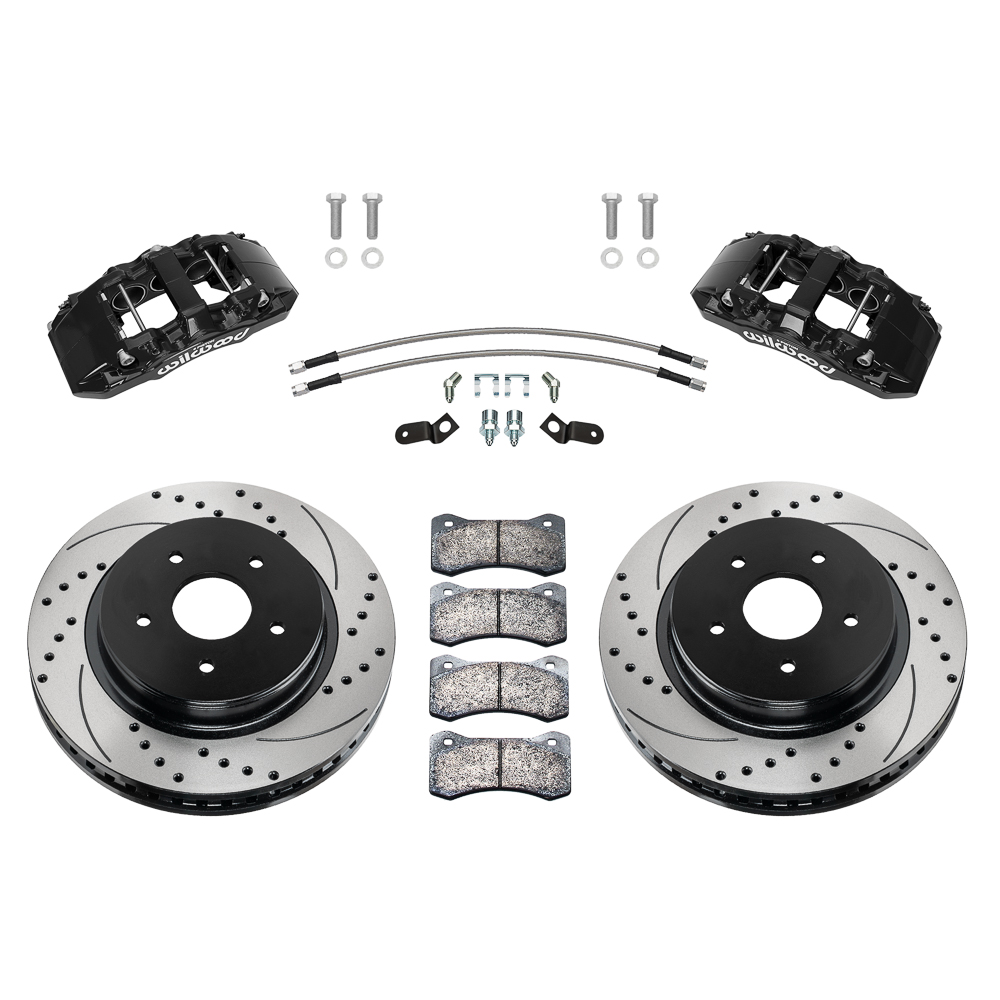 Wilwood AERO6-DM Direct-Mount Truck Front Brake Kit Parts Laid Out - Black Powder Coat Caliper - SRP Drilled & Slotted Rotor Wilwood AERO6-DM Direct-Mount Truck Front Brake Kit Parts Laid Out - Black Powder Coat Caliper - SRP Drilled & Slotted Rotor Zoom Image