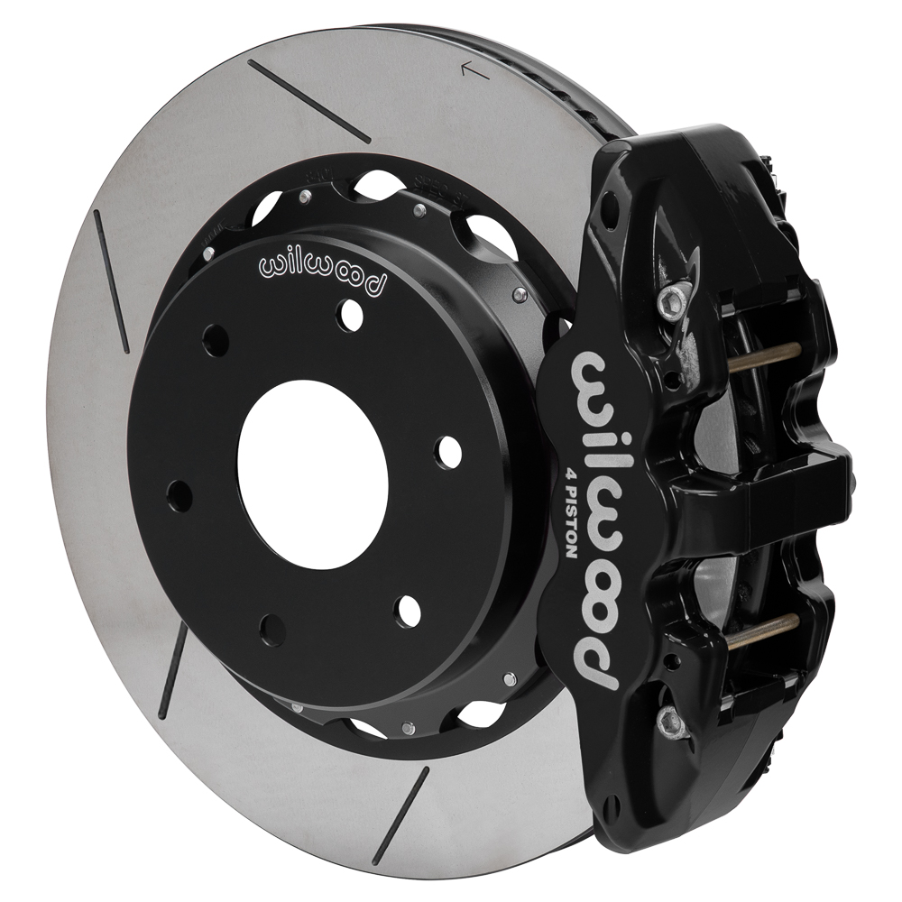 Wilwood AERO4 Big Brake Rear Parking Brake Kit Parts Laid Out - Black Powder Coat Caliper - GT Slotted Rotor Wilwood AERO4 Big Brake Rear Parking Brake Kit Parts Laid Out - Black Powder Coat Caliper - GT Slotted Rotor Zoom Image
