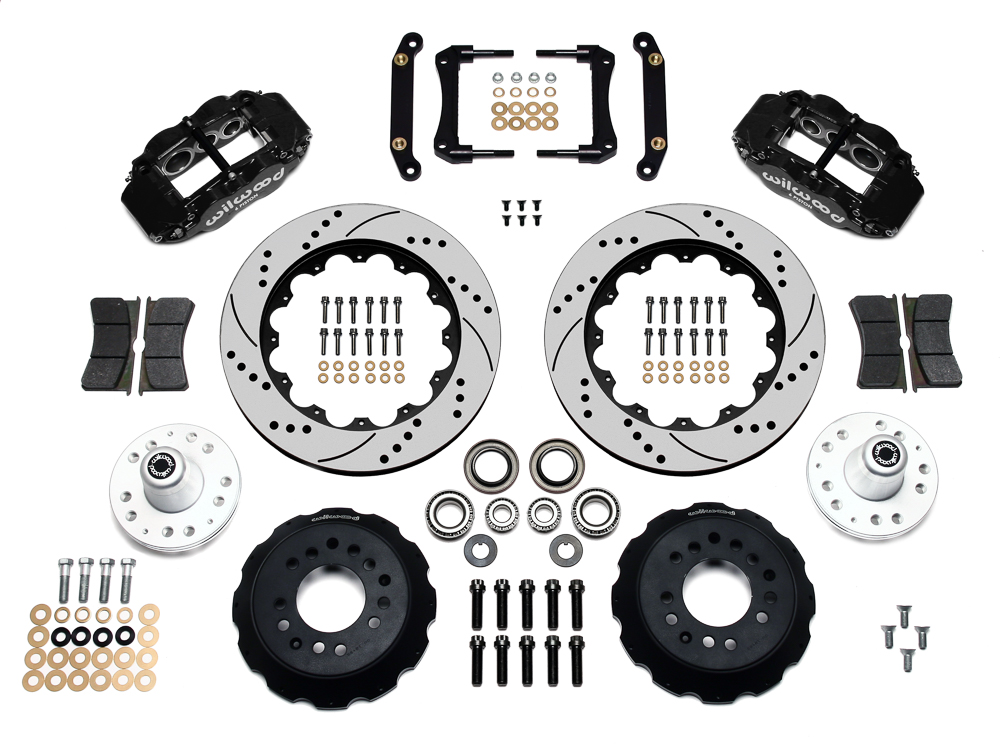 Wilwood Forged Narrow Superlite 6R Big Brake Front Brake Kit (Hub) Parts Laid Out - Black Powder Coat Caliper - SRP Drilled & Slotted Rotor Wilwood Forged Narrow Superlite 6R Big Brake Front Brake Kit (Hub) Parts Laid Out - Black Powder Coat Caliper - SRP Drilled & Slotted Rotor Zoom Image