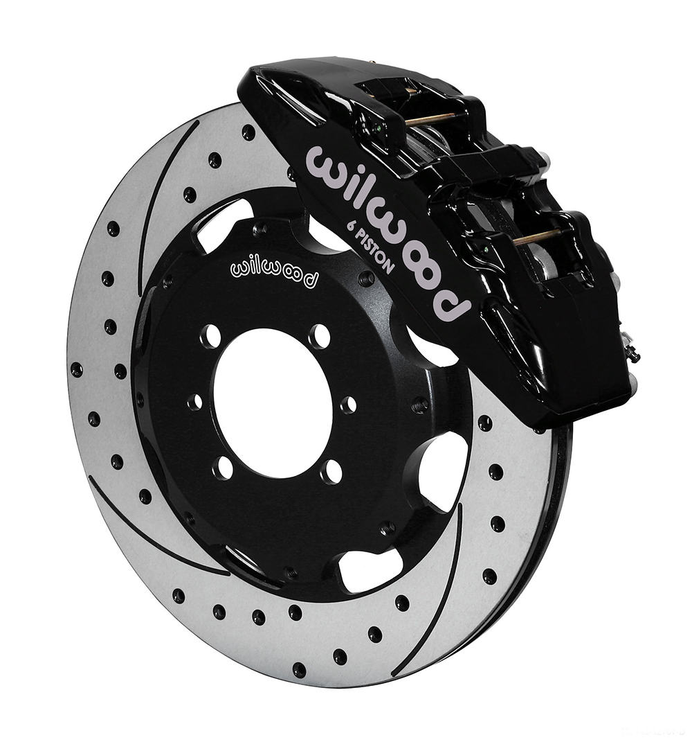 Wilwood Forged Dynapro 6 Big Brake Front Brake Kit (Hat) Parts Laid Out - Black Powder Coat Caliper - SRP Drilled & Slotted Rotor Wilwood Forged Dynapro 6 Big Brake Front Brake Kit (Hat) Parts Laid Out - Black Powder Coat Caliper - SRP Drilled & Slotted Rotor Zoom Image