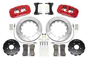 Wilwood AERO6 Big Brake Front Brake Kit Parts Laid Out - Red Powder Coat Caliper - GT Slotted Rotor Wilwood AERO6 Big Brake Front Brake Kit Parts Laid Out - Red Powder Coat Caliper - GT Slotted Rotor Zoom Image