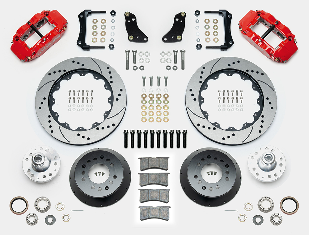 Wilwood Forged Narrow Superlite 6R Big Brake Front Brake Kit (Hub) Parts Laid Out - Red Powder Coat Caliper - SRP Drilled & Slotted Rotor Wilwood Forged Narrow Superlite 6R Big Brake Front Brake Kit (Hub) Parts Laid Out - Red Powder Coat Caliper - SRP Drilled & Slotted Rotor Zoom Image
