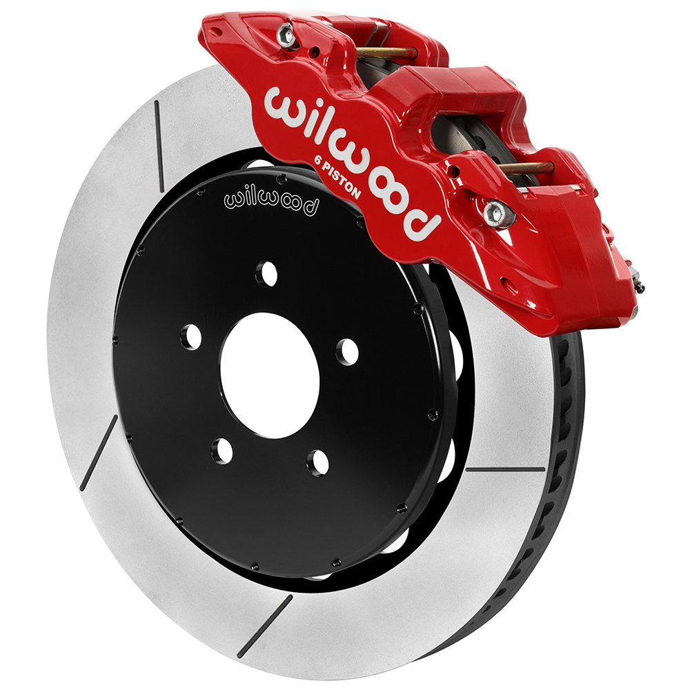 Wilwood AERO6 Big Brake Front Brake Kit Parts Laid Out - Red Powder Coat Caliper - GT Slotted Rotor Wilwood AERO6 Big Brake Front Brake Kit Parts Laid Out - Red Powder Coat Caliper - GT Slotted Rotor Zoom Image