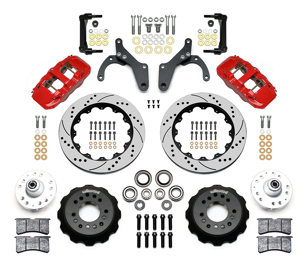 Wilwood AERO6 Big Brake Front Brake Kit Parts Laid Out - Red Powder Coat Caliper - SRP Drilled & Slotted Rotor Wilwood AERO6 Big Brake Front Brake Kit Parts Laid Out - Red Powder Coat Caliper - SRP Drilled & Slotted Rotor Zoom Image