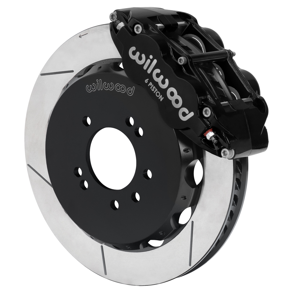 Wilwood Forged Narrow Superlite 6R Big Brake Front Brake Kit (Hat) Parts Laid Out - Black Powder Coat Caliper - GT Slotted Rotor Wilwood Forged Narrow Superlite 6R Big Brake Front Brake Kit (Hat) Parts Laid Out - Black Powder Coat Caliper - GT Slotted Rotor Zoom Image