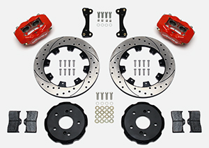 Wilwood Forged Dynalite Big Brake Front Brake Kit (Hat) Parts Laid Out - Red Powder Coat Caliper - SRP Drilled & Slotted Rotor Wilwood Forged Dynalite Big Brake Front Brake Kit (Hat) Parts Laid Out - Red Powder Coat Caliper - SRP Drilled & Slotted Rotor Zoom Image