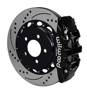 Wilwood AERO4 Big Brake Rear Brake Kit For OE Parking Brake Parts Laid Out - Black Powder Coat Caliper - SRP Drilled & Slotted Rotor Wilwood AERO4 Big Brake Rear Brake Kit For OE Parking Brake Parts Laid Out - Black Powder Coat Caliper - SRP Drilled & Slotted Rotor Zoom Image
