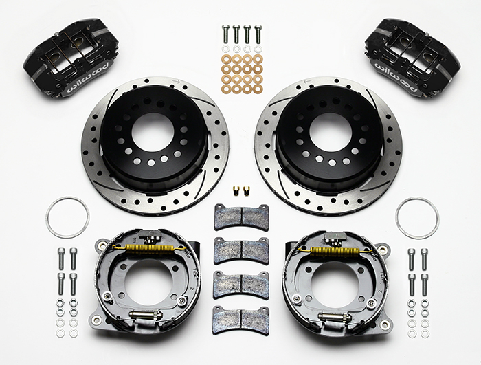Wilwood Forged Dynapro Low-Profile Rear Parking Brake Kit Parts Laid Out - Black Powder Coat Caliper - SRP Drilled & Slotted Rotor Wilwood Forged Dynapro Low-Profile Rear Parking Brake Kit Parts Laid Out - Black Powder Coat Caliper - SRP Drilled & Slotted Rotor Zoom Image