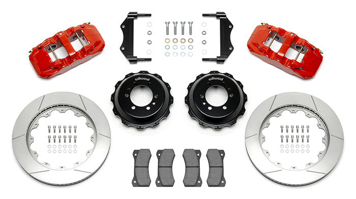 Wilwood AERO6 Big Brake Rear Brake Kit For OE Parking Brake Parts Laid Out - Red Powder Coat Caliper - GT Slotted Rotor Wilwood AERO6 Big Brake Rear Brake Kit For OE Parking Brake Parts Laid Out - Red Powder Coat Caliper - GT Slotted Rotor Zoom Image