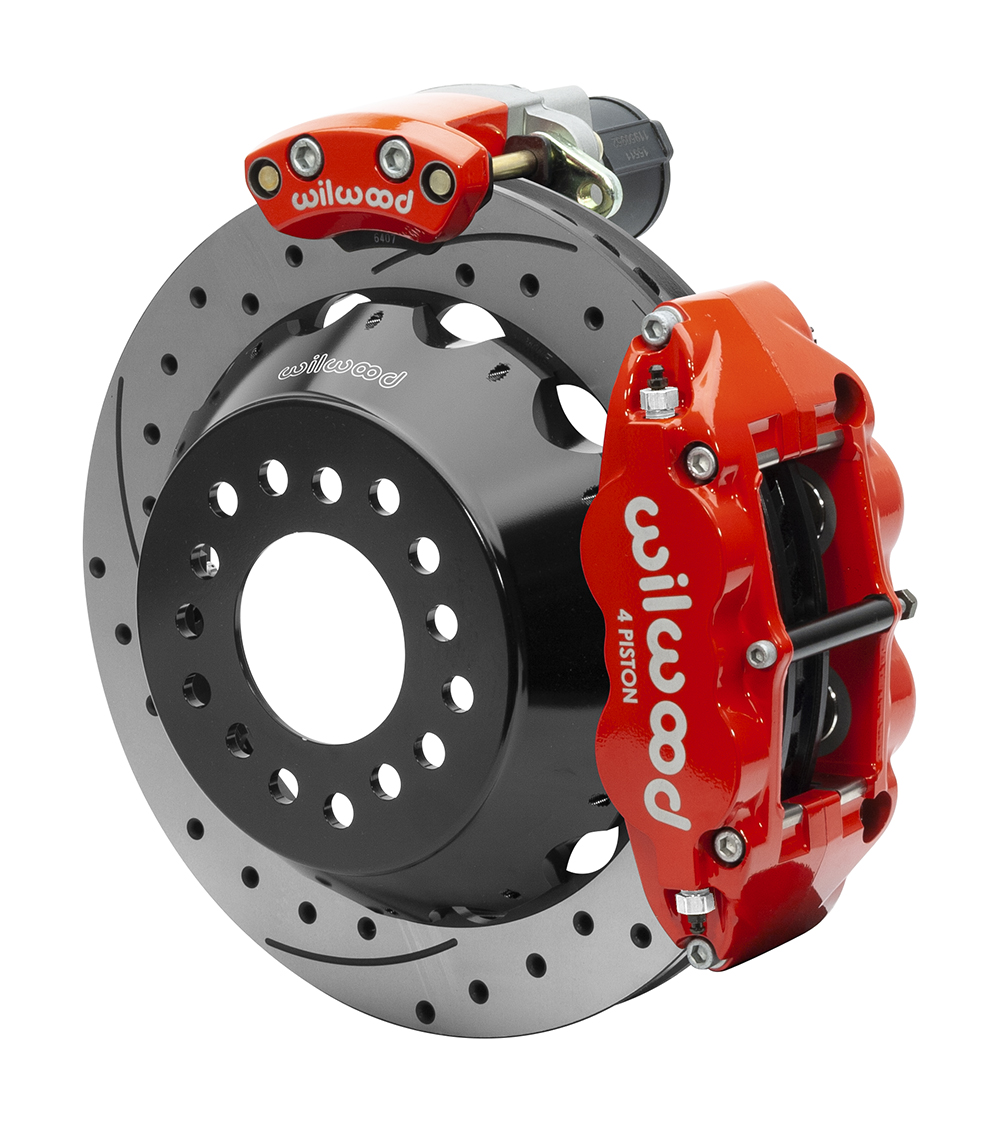 Forged Narrow Superlite 4R Rear Electronic Parking Brake Kits provide the ultimate Big Brake solution for popular muscle car rear axles that require a parking brake. FNSL4R four piston calipers, 13” or 14” two-piece rotors, and high performance BP-10 compound pads provide optimized and balanced braking to compliment front big brake upgrades on all types of custom, show and high performance street machines. The unique Electronic Parking Brake caliper provides a static high torque static holding power for parking without mechanical cabling. Supplied with control unit and harness assembly, it simplifies installation and use. Optional caliper finishes and rotor designs enable the builder to personalize the style and optimize brake performance for every individual application.