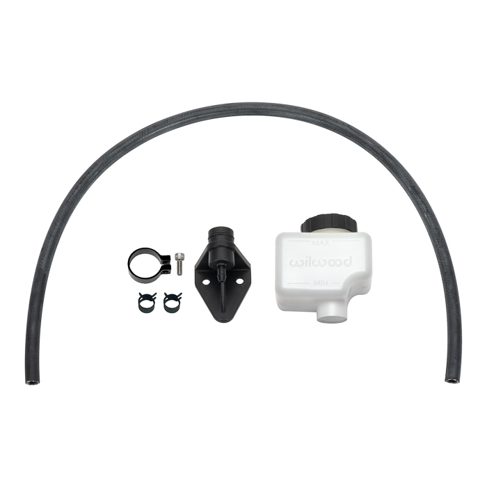 7.0 oz. remote reservoir kit for Wilwood’s GS Master Cylinder. Contains: 7/16-20 to 1/4" hose fitting with crush washer, 30 inches 1/4" ID hose, 1 reservoir, 1 reservoir cap and 1 bracket for reservoir mount. Fluid supply hose is a specially designed for brake fluid use and will not swell or leak like other commonly used materials.