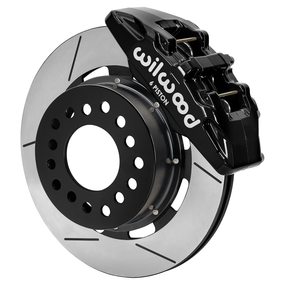 The enhanced brake capacity and pad performance of the DynaPro 6 forged billet six-piston caliper is combined with 12.19” diameter rotors for this group of kits, provide high performance and big brake stopping power by combining modern brake technology with high-tech styling to update the brakes on your vehicle. Specifically designed for use with Wilwood's Modular Aluminum ProSpindle and contain forged aluminum, four-piston calipers mounted over larger diameter, certified alloy 30-vane vented iron rotors. The new two-piece rotor assemblies provide weight-saving forged aluminum mounting hats. The calipers feature an increase in effective piston volume to deliver higher clamping power with less pedal effort than stock brakes. The thicker, vented rotor design adds cooling efficiency and durability to extend service life. BP-series SmartPads add high-response with increased resistance to fade and longer wear over typical OE replacement pads. Options for caliper colors and rotor styles are available to personalize the look on any car. For on-track driving enthusiasts, additional track-only fortifications are available on a custom order basis by contacting the technical staff at the factory.
