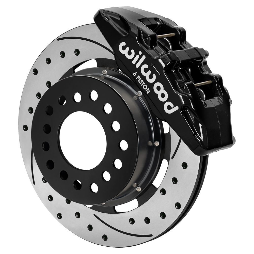 The enhanced brake capacity and pad performance of the DynaPro 6 forged billet six-piston caliper is combined with 12.19” diameter rotors for this group of kits, provide high performance and big brake stopping power by combining modern brake technology with high-tech styling to update the brakes on your vehicle. Specifically designed for use with Wilwood's Modular Aluminum ProSpindle and contain forged aluminum, four-piston calipers mounted over larger diameter, certified alloy 30-vane vented iron rotors. The new two-piece rotor assemblies provide weight-saving forged aluminum mounting hats. The calipers feature an increase in effective piston volume to deliver higher clamping power with less pedal effort than stock brakes. The thicker, vented rotor design adds cooling efficiency and durability to extend service life. BP-series SmartPads add high-response with increased resistance to fade and longer wear over typical OE replacement pads. Options for caliper colors and rotor styles are available to personalize the look on any car. For on-track driving enthusiasts, additional track-only fortifications are available on a custom order basis by contacting the technical staff at the factory.